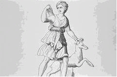 Another main aspect of Artemis' persona was her virginity. It's said that in early childhood, she asked her father, Zeus, to give her eternal celibacy. This was granted and Artemis remained as one of the few virgin goddesses. Not only did she keep her abstinence, but she was extremely protective of her followers being virgins as well. She wasn't too fond of being seen nude by men either. One character by the name of Actaeon, a hunter, found this out the hard way. He happened to find Artemis and her companions bathing nude in a hidden pool. Of course Actaeon couldn't resist the sight of a goddess bathing so he froze and just stood there watching in delight. Unfortunately for him, Artemis caught the little peeper and changed him into a stag. She then sent the hunter's own dogs after him at which point poor Actaeon was killed by the hounds.